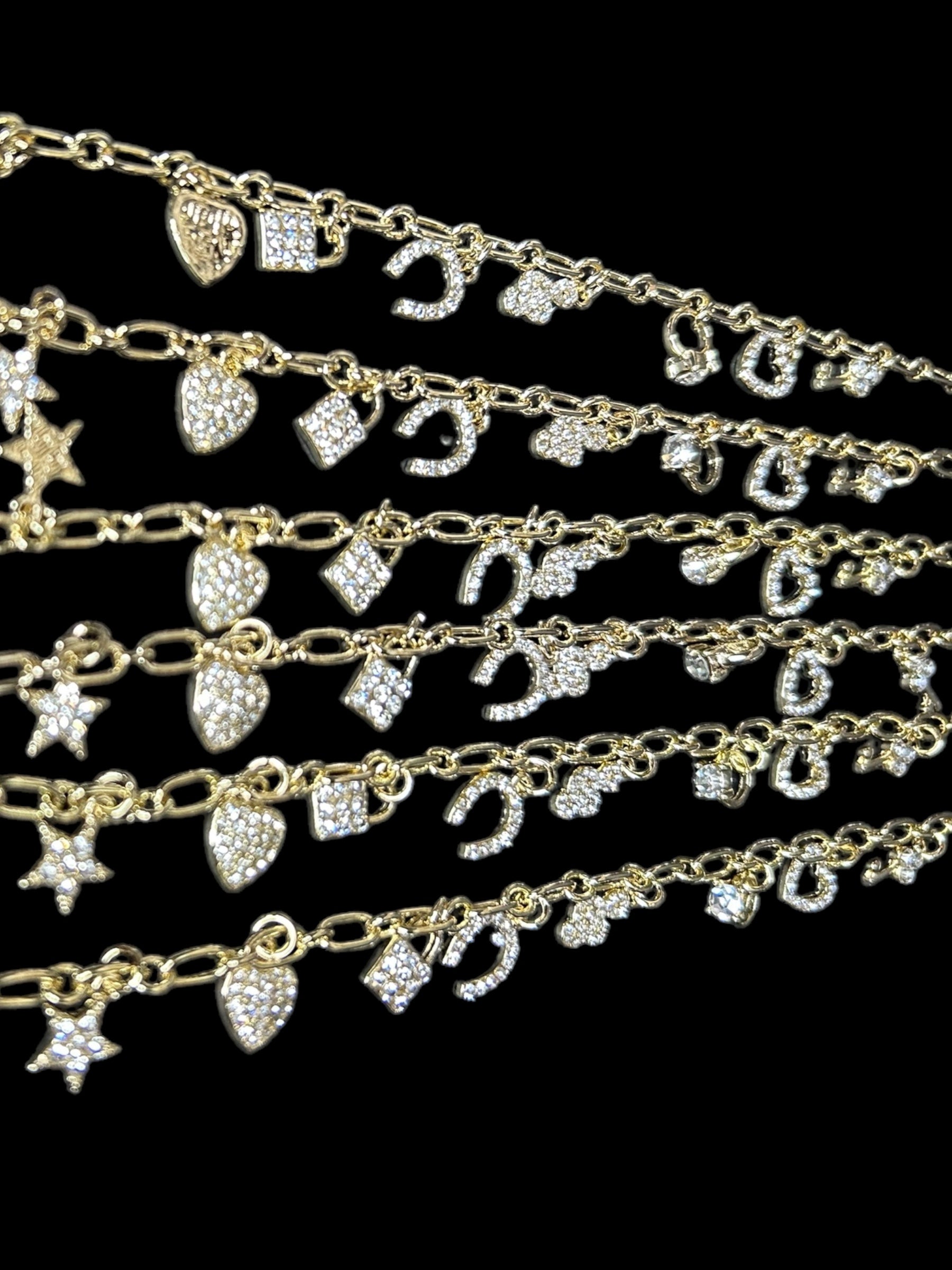 Add a touch of elegance to your outfit with our 18k gold filled Charm Bracelet. Each bracelet comes with beautiful charms that are sure to catch attention. Stand out from the crowd and elevate your style with this stunning accessory.